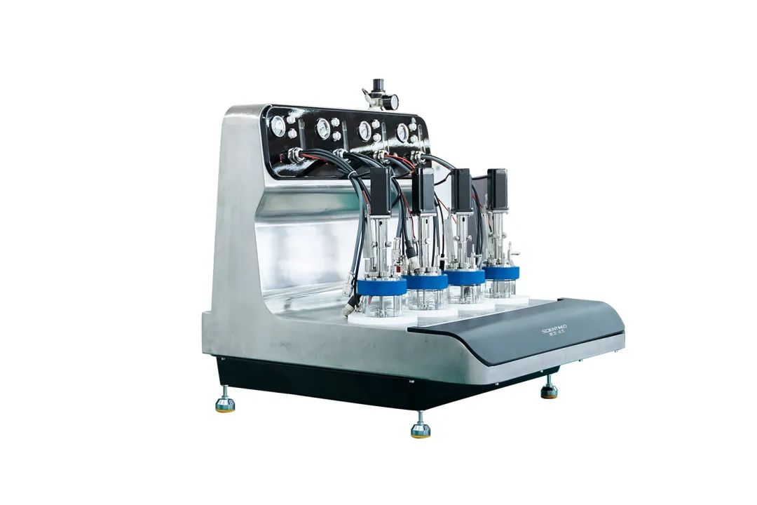多個(gè)高通量微型發(fā)酵罐單元并聯(lián),可組成高通量微型發(fā)酵罐組,最多可并聯(lián) 24 個(gè)單元 96 臺(tái)發(fā)酵罐,以適應(yīng)菌種高通量篩選、培養(yǎng)基配方高通量篩選、發(fā)酵工藝高通量開發(fā)與優(yōu)化、工藝放大的應(yīng)用需求。