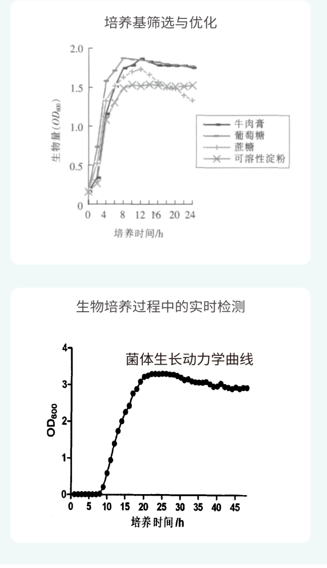 該產(chǎn)品能夠幫助實(shí)驗(yàn)者高效評(píng)估不同的培養(yǎng)菌株和工藝參數(shù)影響,快速確定最佳工藝參數(shù),指導(dǎo)后續(xù)的工業(yè)放大過(guò)程,可應(yīng)用于發(fā)酵工藝優(yōu)化、高通量菌株篩選、培養(yǎng)基篩選與評(píng)價(jià)等方向。