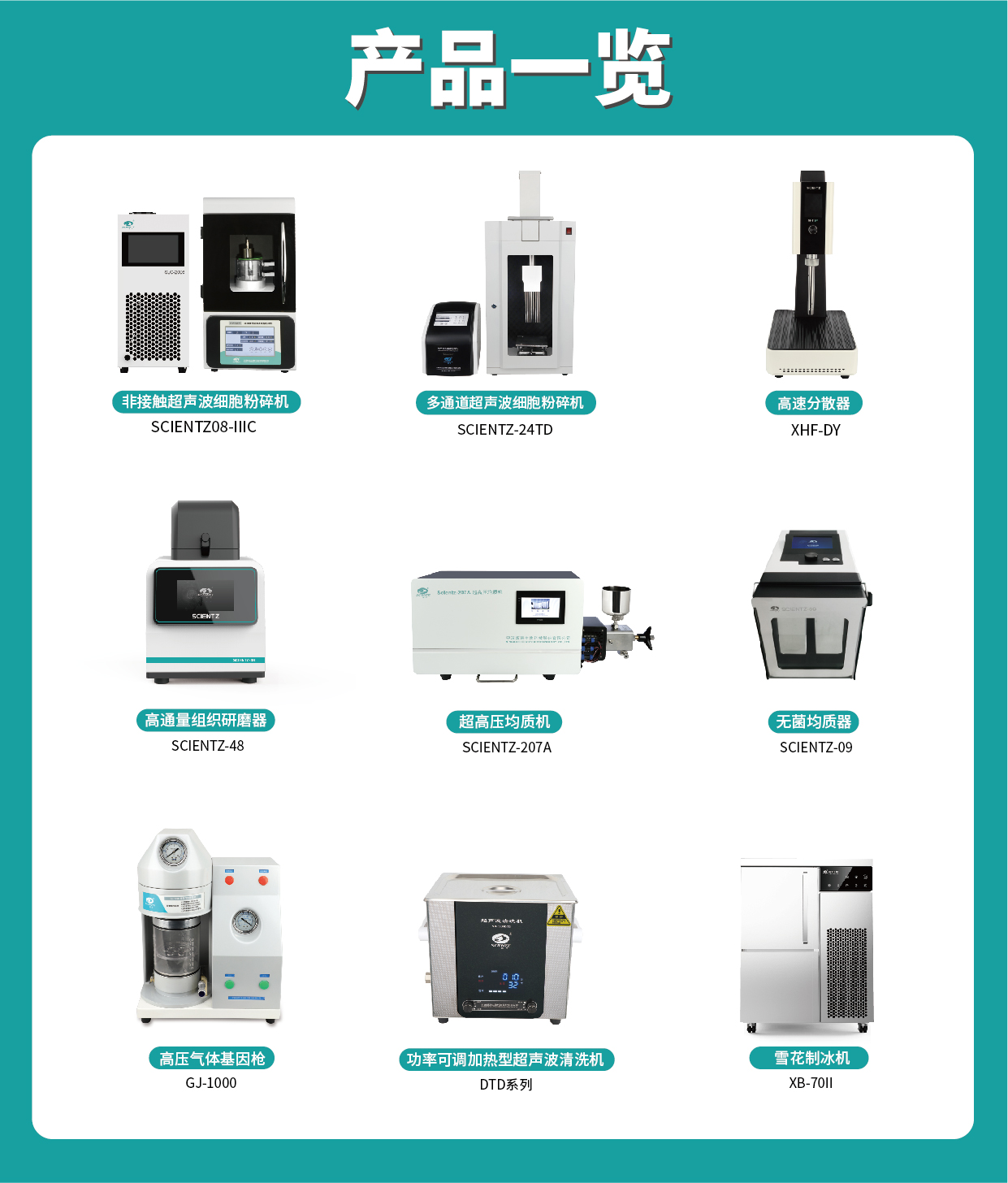 新芝生物專業(yè)研發(fā)生產(chǎn)超聲波細(xì)胞粉碎機(jī)、超聲波清洗機(jī)和超聲波細(xì)胞破碎儀等各種科研實(shí)驗(yàn)儀器與工業(yè)化生產(chǎn)設(shè)備