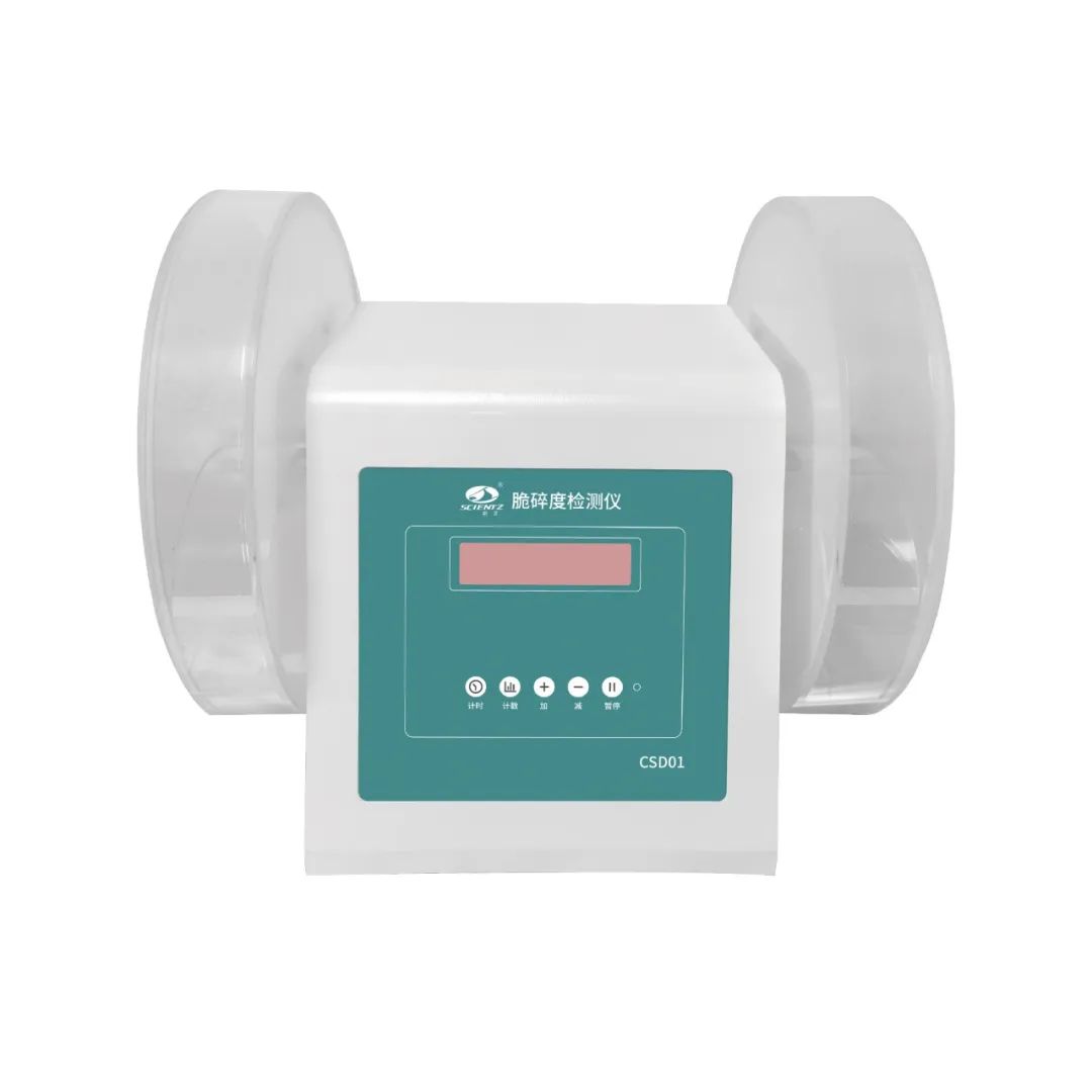新芝脆碎度檢測(cè)儀是根據(jù)中國(guó)藥典規(guī)定生成的專門用于檢測(cè)片劑脆碎度的儀器。該儀器的內(nèi)徑是286毫米,深度是39毫米,轉(zhuǎn)速為25±1轉(zhuǎn)/分,一邊是能夠打開(kāi)的透明耐磨塑料的圓筒,筒內(nèi)有一自中心向外壁延伸的弧形隔片,內(nèi)徑為80mm±1mm,圓筒在轉(zhuǎn)動(dòng)時(shí),片劑會(huì)產(chǎn)生滾動(dòng),圓筒轉(zhuǎn)動(dòng)一圈,片劑就會(huì)滾動(dòng)或滑動(dòng)到筒壁或者其他片劑上面。