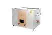 通過換能器,將功率超聲頻源的聲能轉(zhuǎn)換成機械振動,通過清洗槽壁將超聲波輻射到槽子中的清洗液。由于受到超聲波的輻射,槽內(nèi)液體中的微氣泡能夠在聲波的作用下快速變大破裂,破裂時產(chǎn)生的高強度剪切力作用于各類樣品上,從而達到清洗、提取、乳化、加速溶解、粉碎、分散等作用。