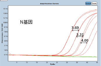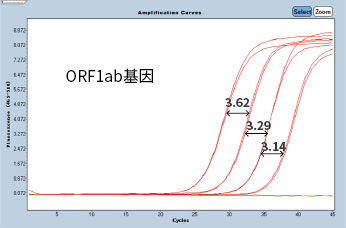 2019-nCOV參考品(10?、10?、10?、103copies/ml)經(jīng)NP-2032提取純化后,產(chǎn)物擴(kuò)增曲線 | ||