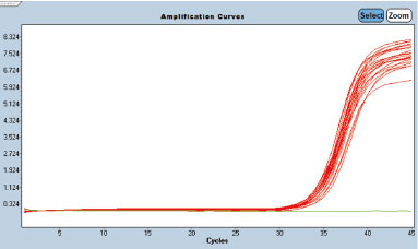 HBV參考品(200 IU/ml)經(jīng)NP-2032提取后的產(chǎn)物 擴(kuò)增曲線,重復(fù)提取32個(gè)樣本,檢測(cè)率32/32 | 全血基因組DNA提取效果 | 動(dòng)物組織基因組DNA提取效果 | ||