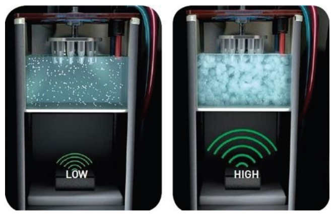 SCIENTZ08-IIIA超聲波DNA打斷儀采用在水槽底部安裝超聲波發(fā)生裝置的設(shè)計(jì),傳統(tǒng)的探頭式超聲波引起的微流動(dòng)現(xiàn)象和超聲波空化效應(yīng)只能在靠近探頭的區(qū)域出現(xiàn),單位面積的聲強(qiáng)大但超聲輻射面小,而非接觸式超聲波DNA打斷儀由于在水槽底部安裝了超聲波換能器,使水槽完全處于超聲波的作用范圍內(nèi),超聲作用分布廣泛而均衡, 降低了泡沫的形成。在實(shí)驗(yàn)過程中,SCIENTZ超聲非接觸式粉碎機(jī)自動(dòng)的連續(xù)旋轉(zhuǎn)離心管則使超聲波的能量分布更為均勻。