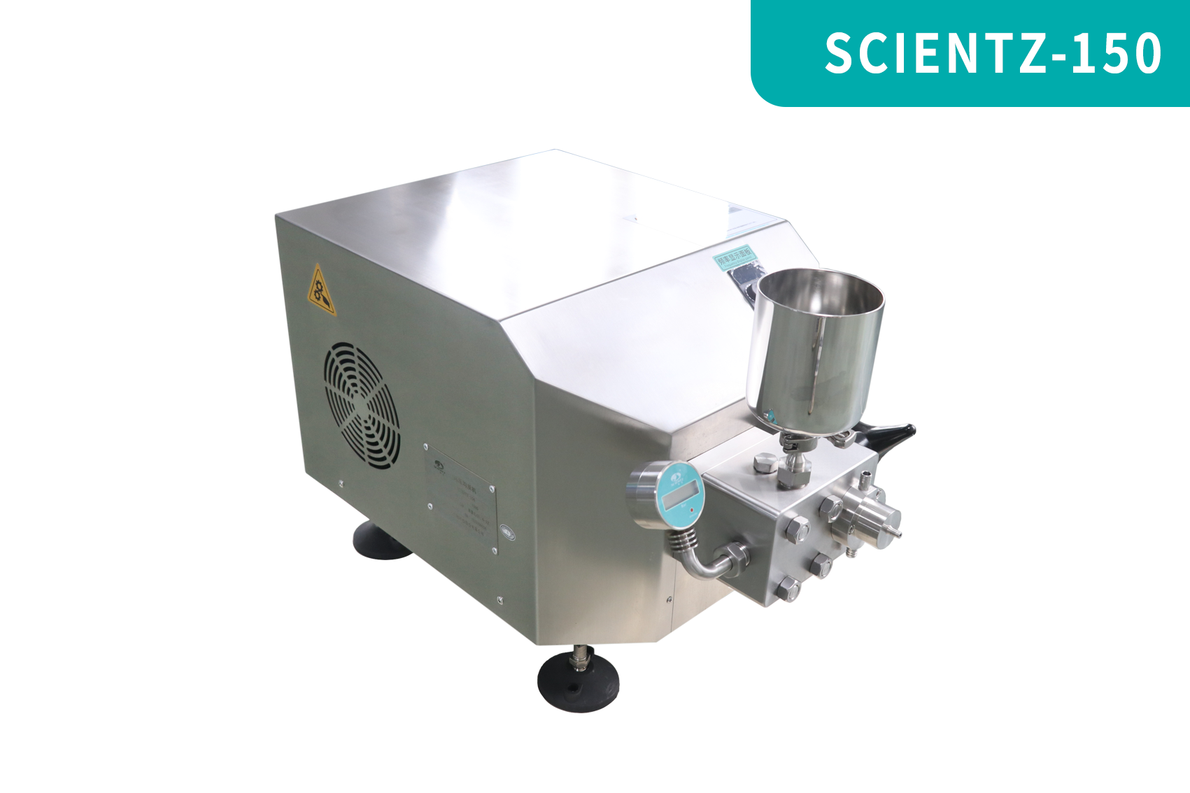 SCIENTZ-150高壓均質(zhì)機(jī)是一種小型化的臺(tái)式樣品處理裝置,具備流量變頻可調(diào),內(nèi)置冷卻系統(tǒng)和外置冷卻雙重冷卻,可將出料溫度控制在10℃以下 等優(yōu)勢(shì),并可選購(gòu)不同應(yīng)用均勻閥。具有壓力高、體積小、操作方便、處理效率高及出樣量大等特點(diǎn),是生物、制藥、食品和材料等行業(yè)研發(fā)及生產(chǎn)的標(biāo)準(zhǔn)設(shè)備。