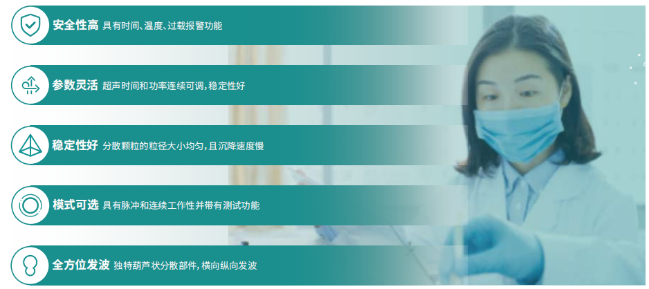 ? 穩(wěn)定性好 分散顆粒的粒徑大小均勻,且沉降速度慢 | ? 模式可選 具有脈沖和連續(xù)工作性并帶有測試功能 |