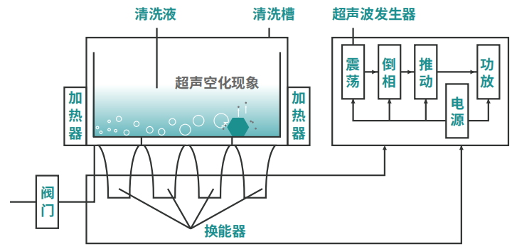 通過換能器,將功率超聲頻源的聲能轉(zhuǎn)換成機械振動,通過清洗槽壁將超聲波輻射到槽子中的清洗液。由于受到超聲波的輻射,槽內(nèi)液體中的微氣泡能夠在聲波的作用下快速變大破裂,破裂時產(chǎn)生的高強度剪切力作用于各類樣品上,從而達到清洗、提取、乳化、加速溶解、粉碎、分散等作用。